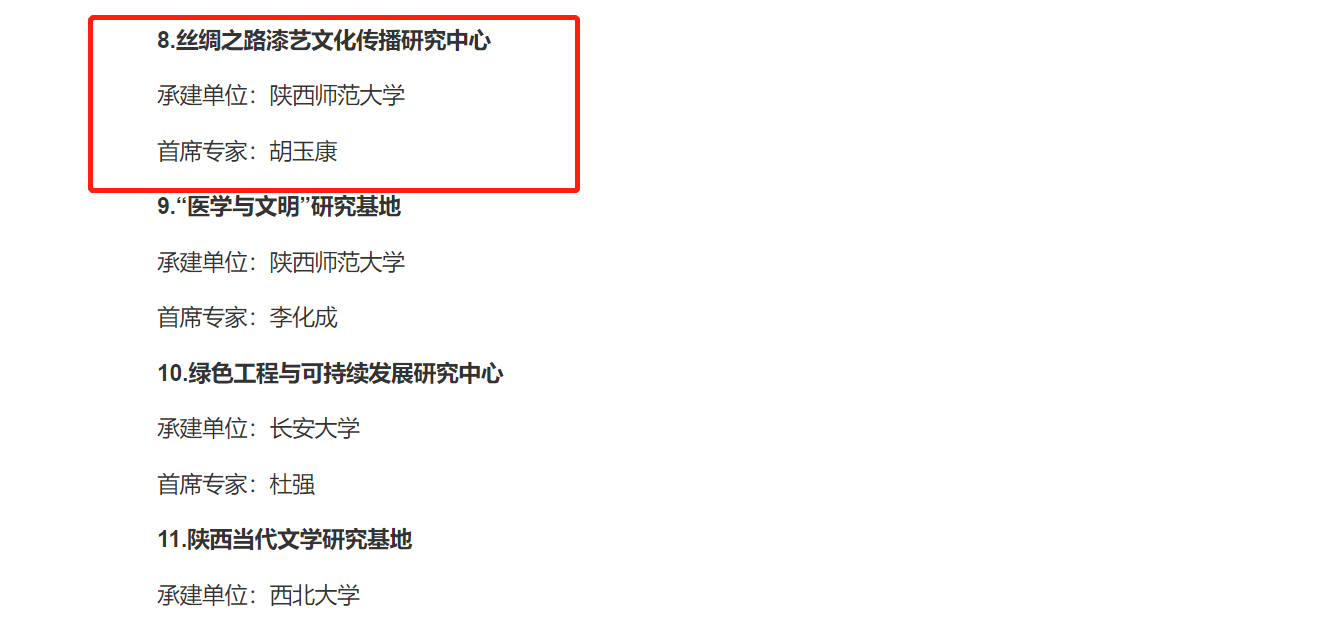 近日,中共陕西省委宣传部公示了第四批陕西省哲学社会科学重点研究基地入选名单,公司胡玉康教授申报的“丝绸之路漆艺文化传播研究中心”拟获批陕西省哲学社会科学重点研究基地,这是公司胡玉康教授团队多年来在漆画方面实践和研究的成果,标志着公司在团队建设方面迈上了新台阶。