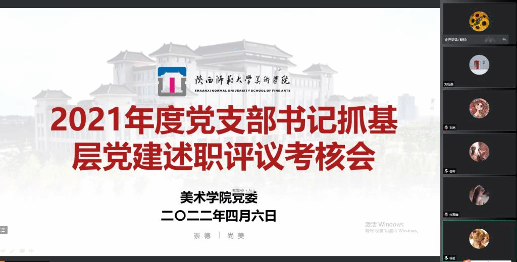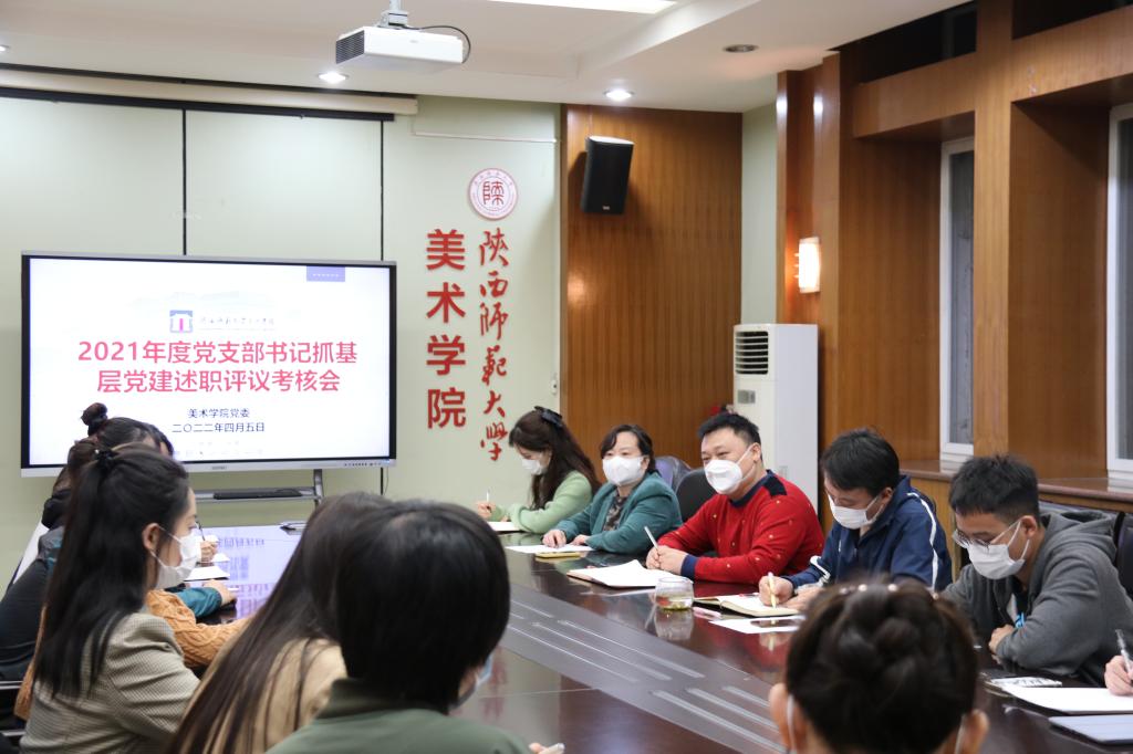 甄军军作了总结讲话,他首先对每位支部书记一年来的辛勤付出表示感谢,对全体党员在2021年所做出的努力表示感谢。同时他强调党支部书记述职评议考核是一次相互交流,取长补短的好机会。他希望各支部进一步加强规范化、标准化建设,围绕专业特色,主动挖掘“党建+美术”,要让每一位党员都成为一面旗帜,每一个支部都成为一个堡垒,真正实现党建和业务工作的实质性融合。他要求每个支部书记要提高政治站位,当好班长、带好班子、树好形象、建好队伍,围绕自己能力和素质提升,加强学习,争作表率。