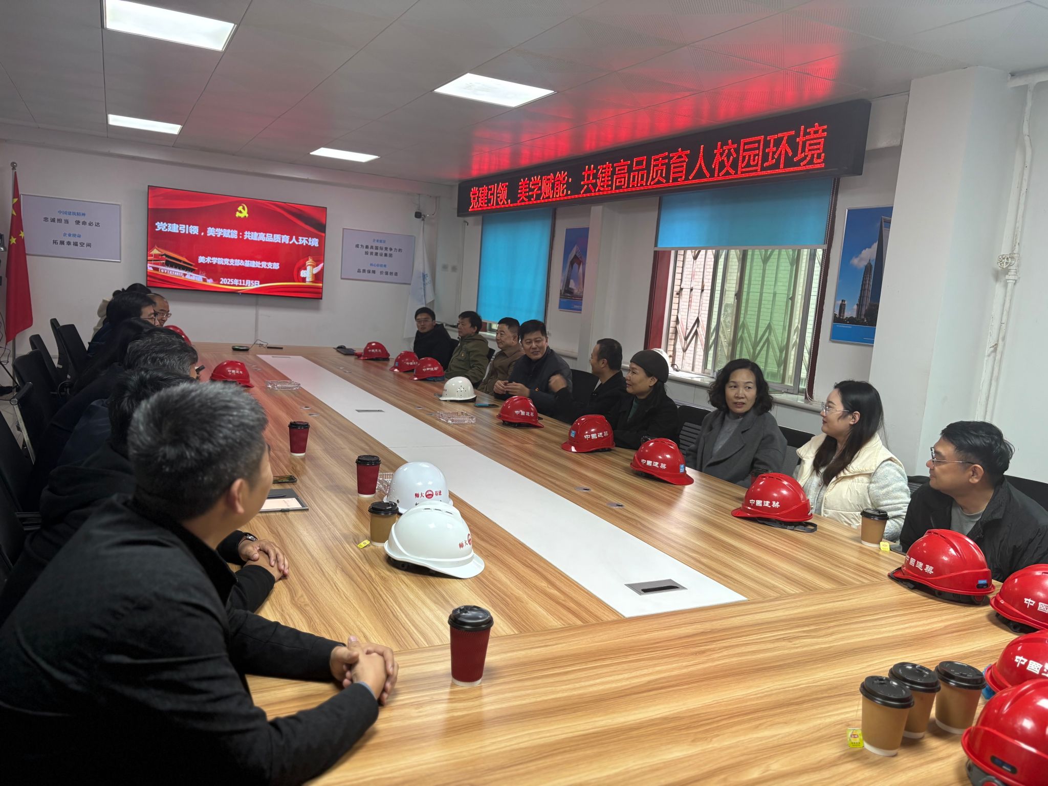全体党员首先实地参观员工公寓二期项目建设现场,详细了解项目的整体规划、阶段性目标及当前建设进展。随后,双方围绕党的二十届四中全会精神及2025年下半年党员基本培训内容,结合工作实际展开深入交流,就如何将美学理念融入校园基建、艺术元素怎样提升空间品质等问题进行探讨,并初步达成后续协同共建的合作意向。