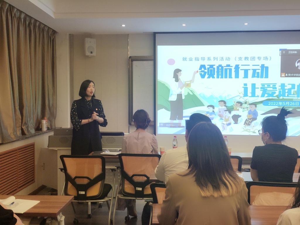 2022年5月26日晚19:00,公司于六艺楼403教室举办了就业指导系列活动之“领航行动·让爱启航”支教团专场交流会。出席交流会的有公司党委副书记贾润泽,团委书记孙雅媛,研究生及本科生辅导员陈琦、刘钰强、李冬晨、王雪滢、王艺茗以及公司五位参加过支教团的优秀员工和同学。交流会分为线上和线下两个专场,由王雪滢主持。