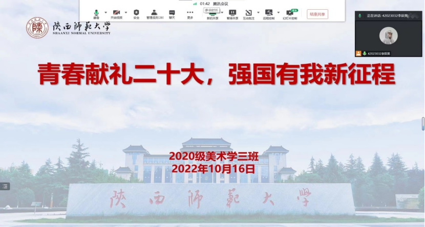 2021级美术学二班于腾讯会议举办“学习二十大,永远跟党走”主题团日活动。