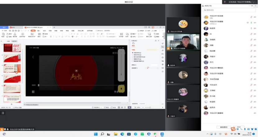 2022级书法一班在腾讯会议开展主题团日活动。
