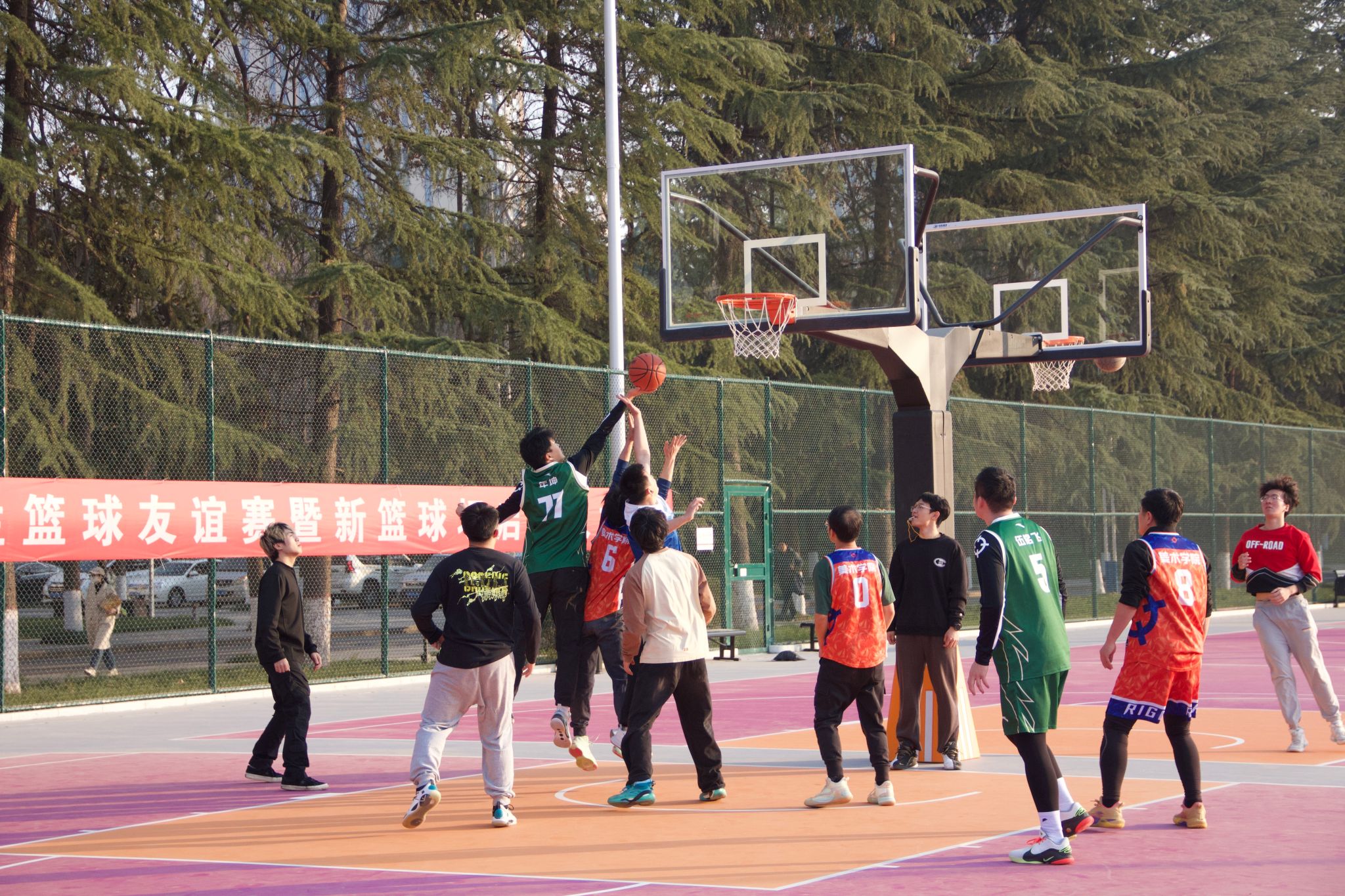 为丰富师生课余生活,搭建互动交流的桥梁,2025年12月10日,英国上市公司365“迎新杯”师生篮球友谊赛在长安校区室外篮球场热烈开幕。公司教职工代表队与员工篮球队同场竞技,共同演绎了一场充满激情与温情的体育盛宴。