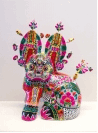 (4)接着在装饰色彩概念的基础之上仔细分析泥塑作品照片,老师带着员工一起分析讨论画面色彩的特点:色彩纯度高,用色鲜艳夸张,有一定的象征意义。