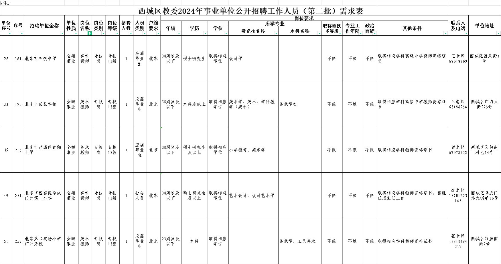 11.北京市西城区教委2024年事业单位公开招聘工作人员(第二批)公告https://rsj.beijing.gov.cn/xxgk/gkzp/202406/t20240613_3711423.html