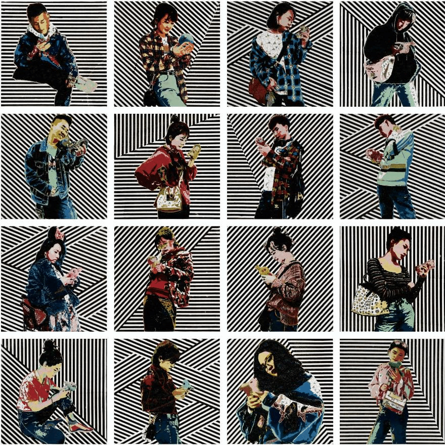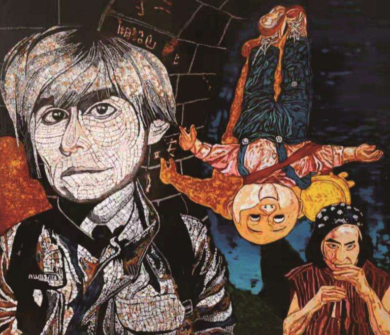 王健 赵艳峰(研究生)安迪沃霍尔登上了长城 漆画