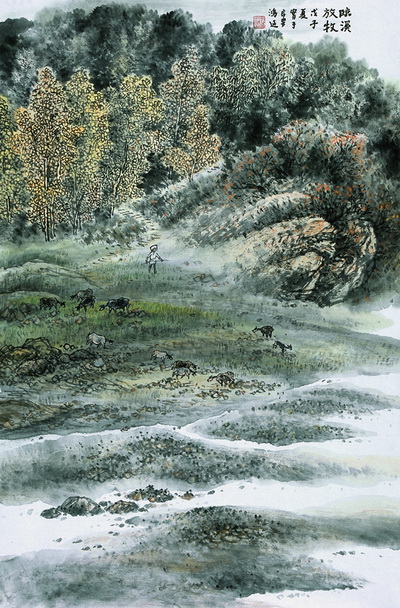 徐鸿延《临溪放牧》